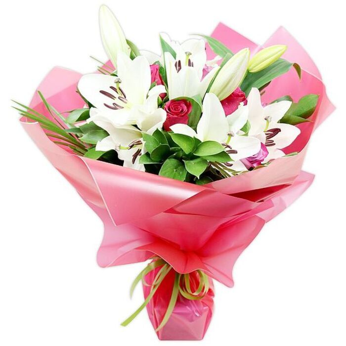 Embrace the splendor and uniqueness of our Luxurious Blossom Arrangement. Featuring white Oriental lilies and velvet red roses intertwined with salal and palm leaves, this bouquet is a testament to elegance and sophistication. Each flower is carefully hand-selected to ensure maximum freshness and longevity.